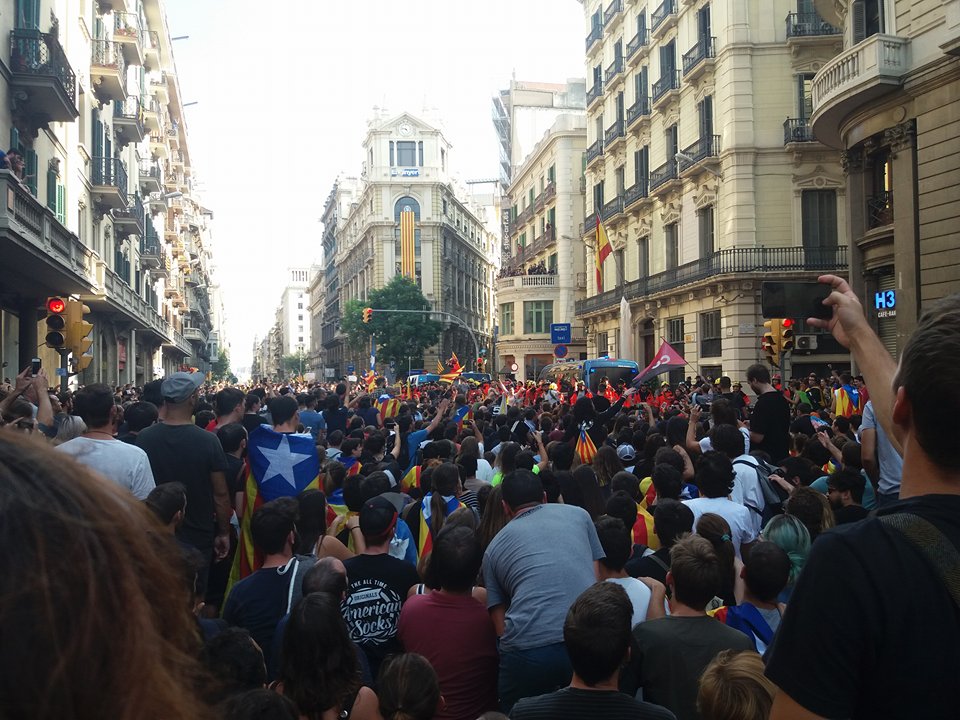 Μαζικές συγκεντρώσεις με τη συμμετοχή δεκάδων χιλιάδων κόσμου πραγματοποιήθηκαν σε όλες τις μεγάλες πόλεις της Καταλονίας, όπως μεταδίδει το Telesur.