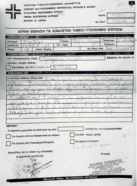 Αυτός χορήγησε και το πιστοποιητικό που παρουσίασε η πρώην υποψήφια της Χρυσής Αυγής, Θέμις Σκορδέλη, με βάση το οποίο πέτυχε μία από τις πολλές αναβολές της δίκης της για το μαχαίρωμα Αφγανού το 2011 στον Αγιο Παντελεήμονα, για το οποίο καταδικάστηκε μετά από έξι χρόνια.