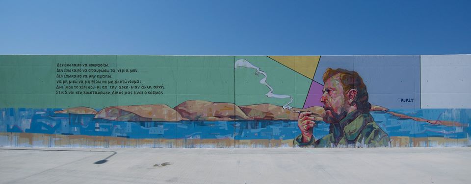 Με αυτόν τον στίχο και το πρόσωπο του κομμουνιστή ποιητή σε περισυλλογή ομόρφυνε ένας τοίχος στο νησί του Άη Στράτη, στο πλαίσιο της δράσης «Χρώμα στα νησιά», που βρίσκεται σε εξέλιξη από τις 29 Ιουνίου έως τις 28 Ιουλίου.