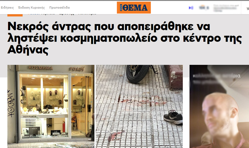 Η είδηση του θανάτου του, αρχικά εμφανίζεται από το Πρώτο Θέμα ως «Νεκρός άντρας που αποπειράθηκε να ληστέψει κοσμηματοπωλείο στο κέντρο της Αθήνας», ενώ απεικονίζεται από τον ΣΚΑΪ με ένα μπουκάλι μπύρα και λεζάντα «Περιστασιακός χρήστης ο 33χρονος δράστης».