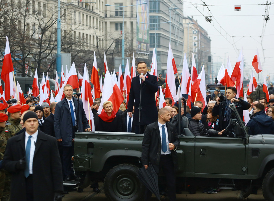 Ο πρόεδρος Ντούντα, για τον οποίον έχει διαρρεύσει το ηχογραφημένο περιεχόμενο συζήτησης στην οποία κάνει αντισημιτικά σχόλια και ο οποίος από την εκλογή του το 2015 διολισθαίνει σταθερά προς την απολυταρχία, είπε ότι θέλει έναν «υπερήφανο και πανηγυρικό εορτασμό», χωρίς τα τραγούδια που ακούστηκαν την περασμένη χρονιά, με στίχους όπως «Καθαρή Πολωνία, Λευκή Πολωνία» κλπ. Δεν αναφέρθηκαν επεισόδια, ωστόσο ακούστηκαν συνθήματα εναντίον της ΕΕ (οι διαδηλωτές έκαψαν τη σημαία της), υπήρχαν οι σημαίες του ακροδεξιού NRO και του επίσης νεοφασιστικού Forza Nuova. Η κυβέρνηση της Πολωνίας με αυτόν τον τρόπο επιβεβαίωσε τη στήριξή της σε νεοναζιστικές ομάδες, επισημοποιώντας με τη συμμετοχή της τη συμπόρευσή τους.
