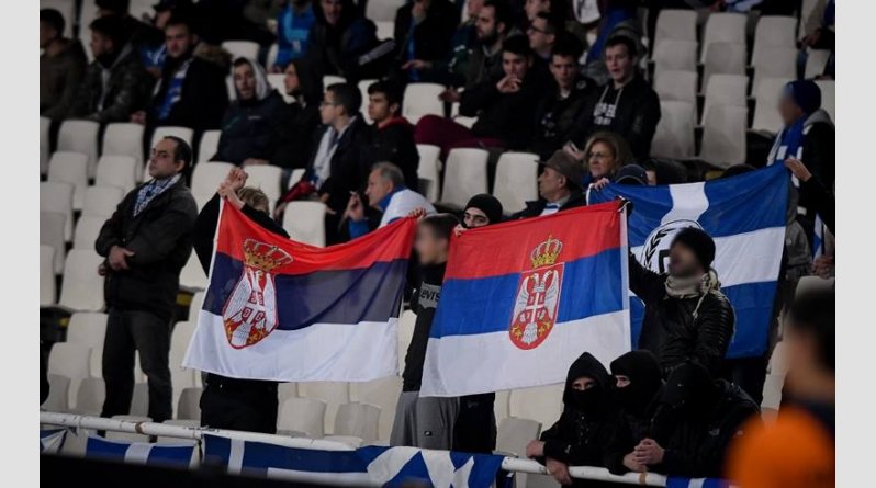 Συγκεκριμένα, η συγκεκριμένη ομάδα ανθρώπων που βρισκόταν στις κερκίδες σήκωσε σημαία με τον «Μαύρο Ήλιο» των SS, καθώς και μία ελληνική με τον χρυσαυγίτικο μαίανδρο και δύο σερβικές σημαίες. Παράλληλα, φώναξαν συνθήματα για τη Βόρειο Ήπειρο, την Αλβανία και τη Μακεδονία, καθώς και γνωστά εθνικιστικά για τον Αλέξη Τσίπρα και το Πολυτεχνείο, ενώ έκαψαν μία τουρκική σημαία.