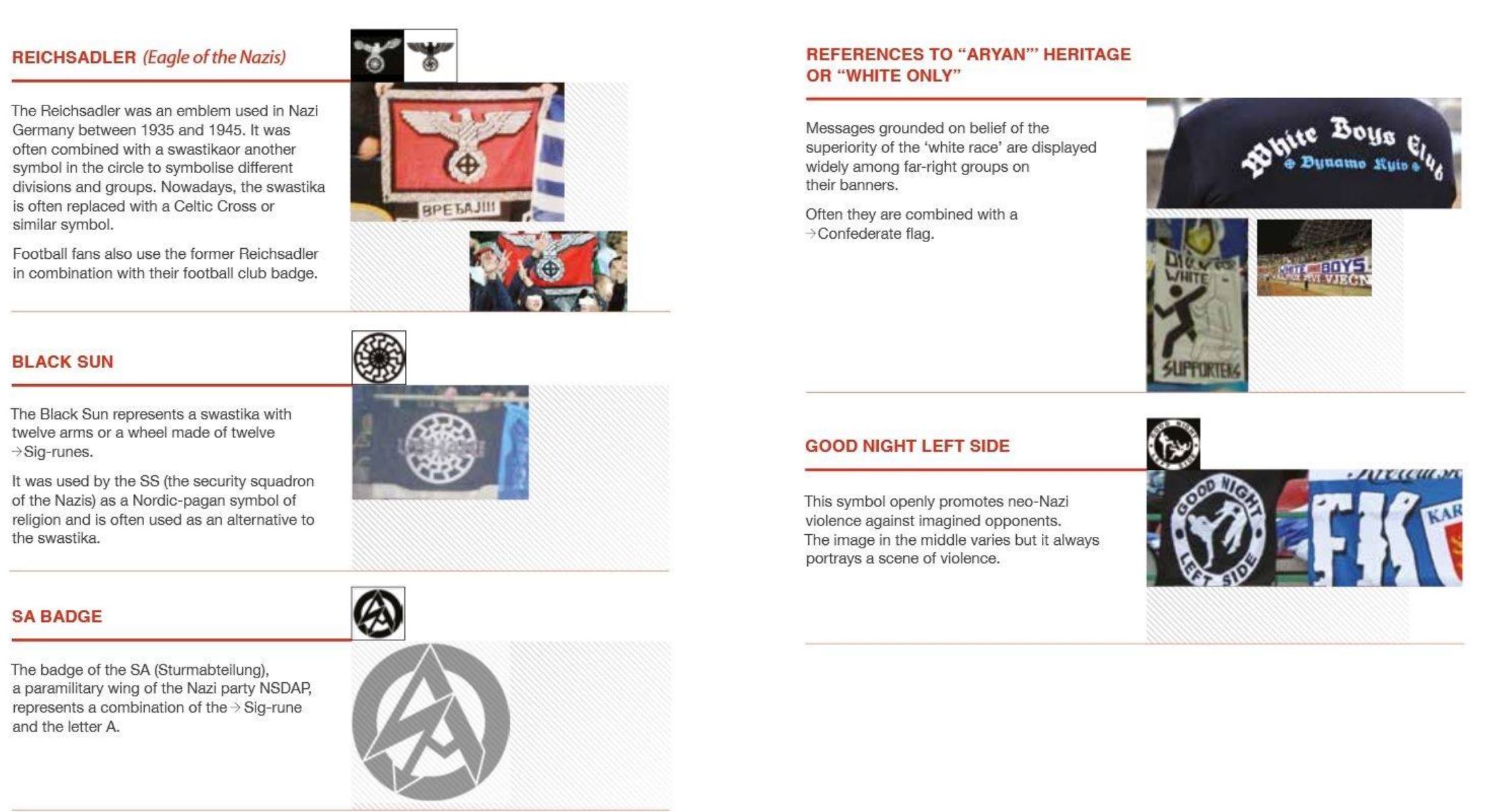 Σχετικά με τον «Μαύρο Ήλιο» των SS, το σύμβολο χρησιμοποιήθηκε κατά το '30 στις τελετές μύησης στο εθνικοσοσιαλιστικό κόμμα, ενώ αξίζει να σημειωθεί πως συναντάται στο μωσαϊκό του πύργου Βέβελσμπουργκ, που είχε μετατρέψει ο Χάινριχ Χίμλερ το 1933 σε κέντρο των SS. Όπως αναφέρει το XYZ Contagion, το συγκεκριμένο σύμβολο αποτελεί για την ποδοσφαιρική ομοσπονδία της UEFA σύμβολο μίσους (σελίδα 7 του σχετικού εγχειρίδιου της Farenet – Football Against Racism in Europe, FARENET.org).