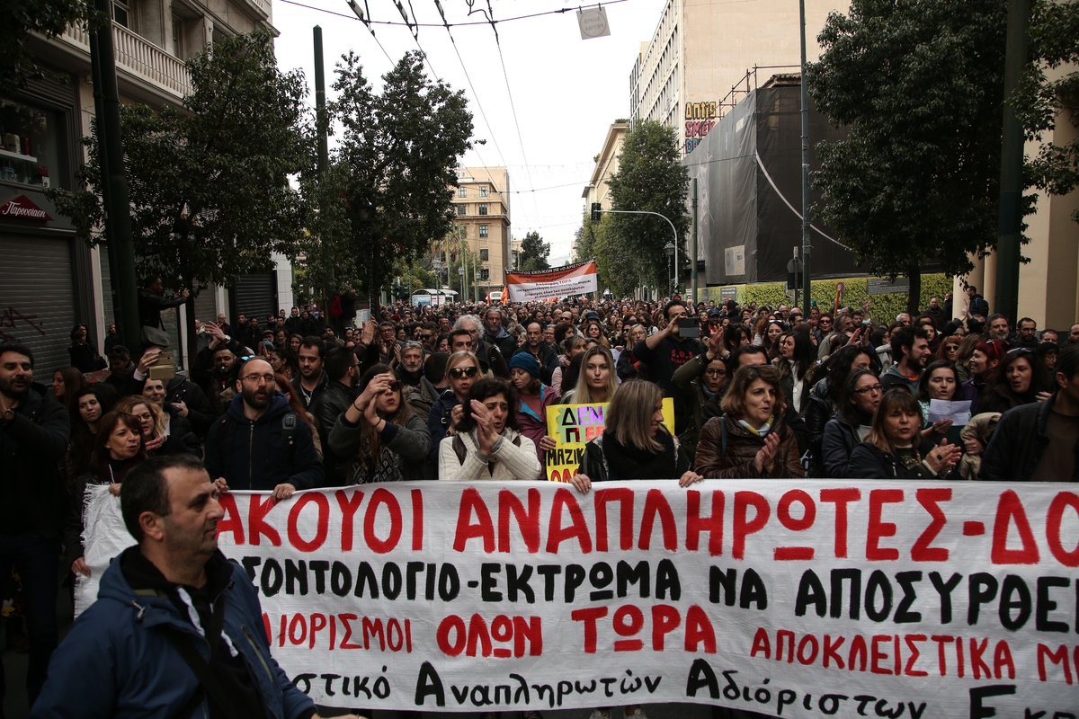 «Σας στέλνουμε μήνυμα ανυποχώρητου αγώνα ενάντια στο προσοντολόγιο – έκτρωμα που απολύει χιλιάδες συναδέλφους μας, απαξιώνει τα πτυχία και τα χρόνια δουλειά μας, οδηγεί σε ένα αέναο κυνήγι προσόντων και ανταγωνισμού, μονιμοποιεί την επισφάλεια, την ελαστική εργασία και την ανακύκλωση της ανεργίας. Κάνουμε κάλεσμα προς όλους τους συναδέλφους, από όλη την Ελλάδα που απεργούν μαζικά και ετοιμάζονται για την διαδήλωση να στηρίξουν εμπράκτως την κατάληψη, κατεβαίνοντας άμεσα στα Προπύλαια. Μετατρέπουμε την Πρυτανεία σε κέντρο αγώνα και μεταφέρουμε την Πανελλαδική Συνέλευση Αγώνα (αναπληρωτών, Εκπ/κών Σωματείων, Φοιτητών, μαθητών) αμέσως μετά τη διαδήλωση στο αμφιθέατρο της Πρυτανείας».